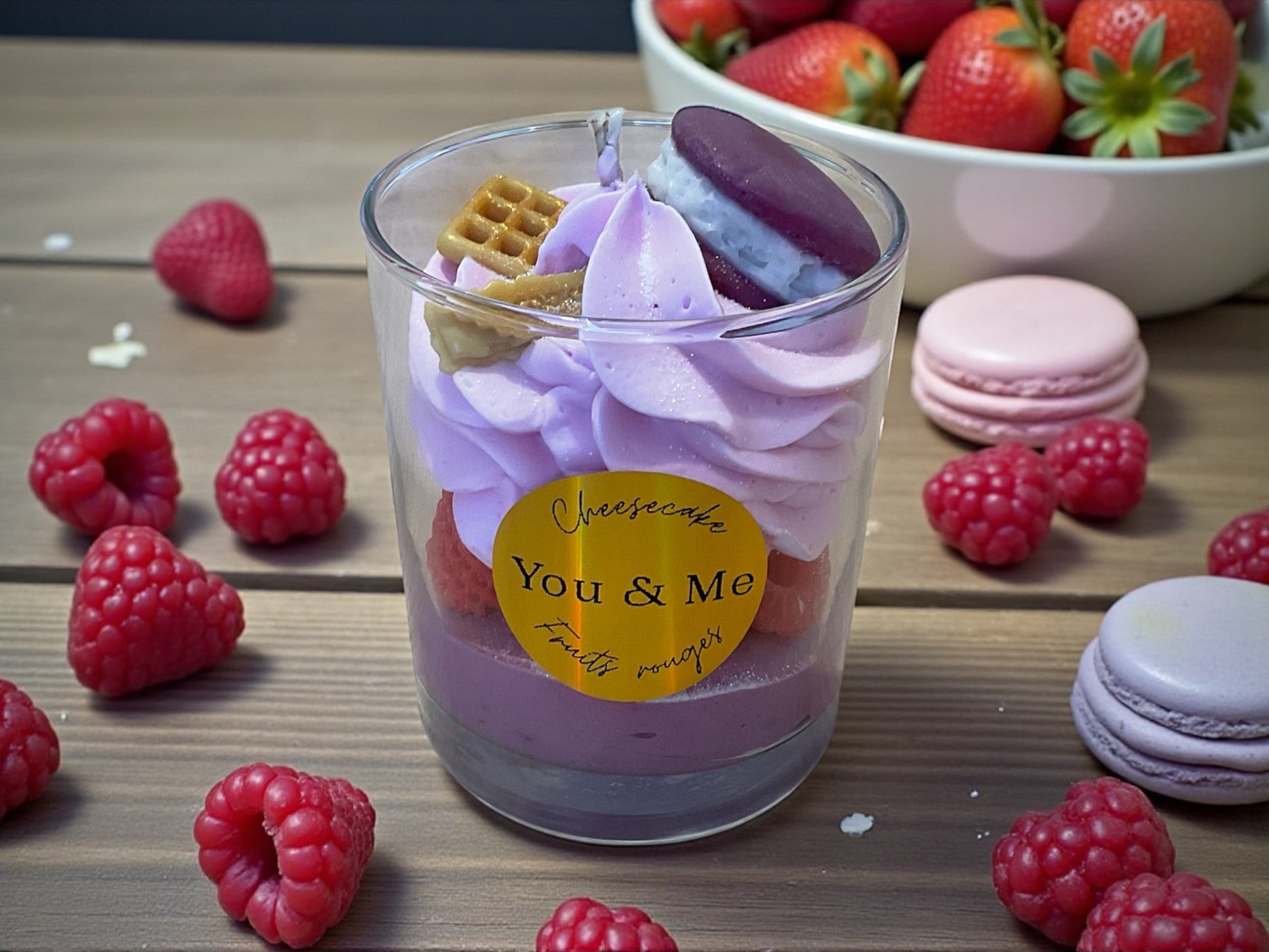 Cette bougie parfumée au cheesecake fruits rouges, surmontée d’un délicat macaron, est une véritable invitation à la tendresse.