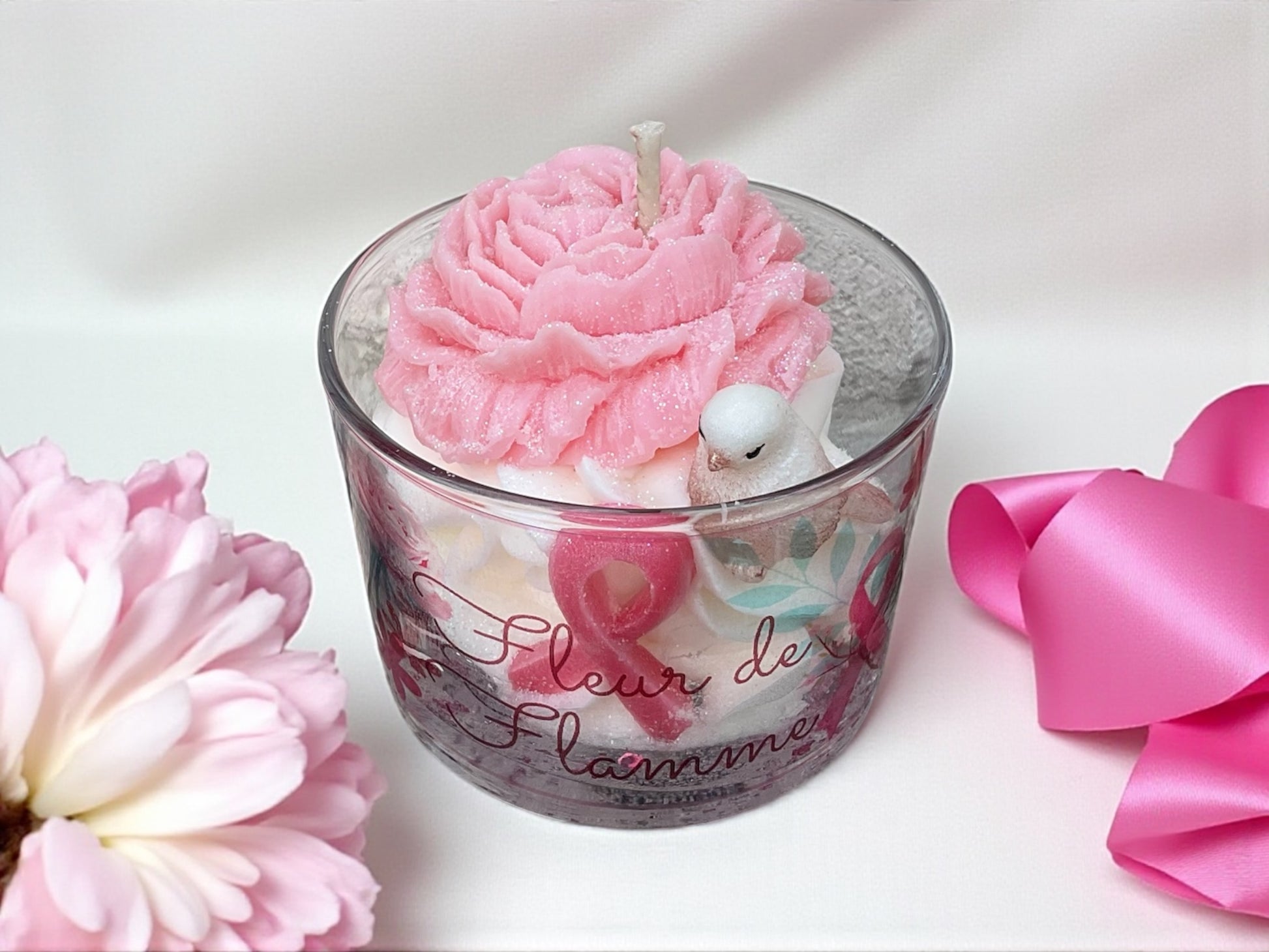🌸 Bougie Fleur de flamme édition Octobre Rose