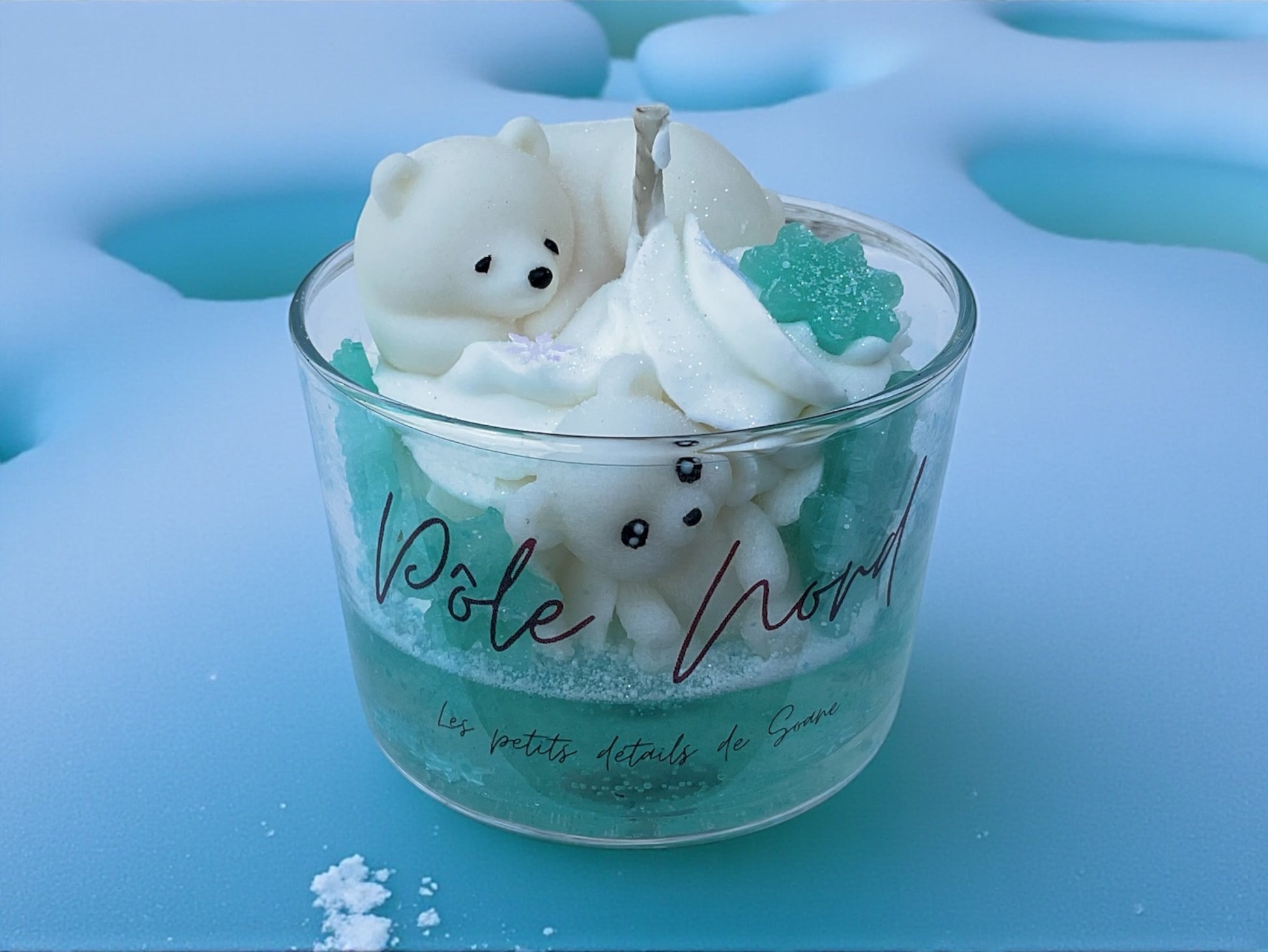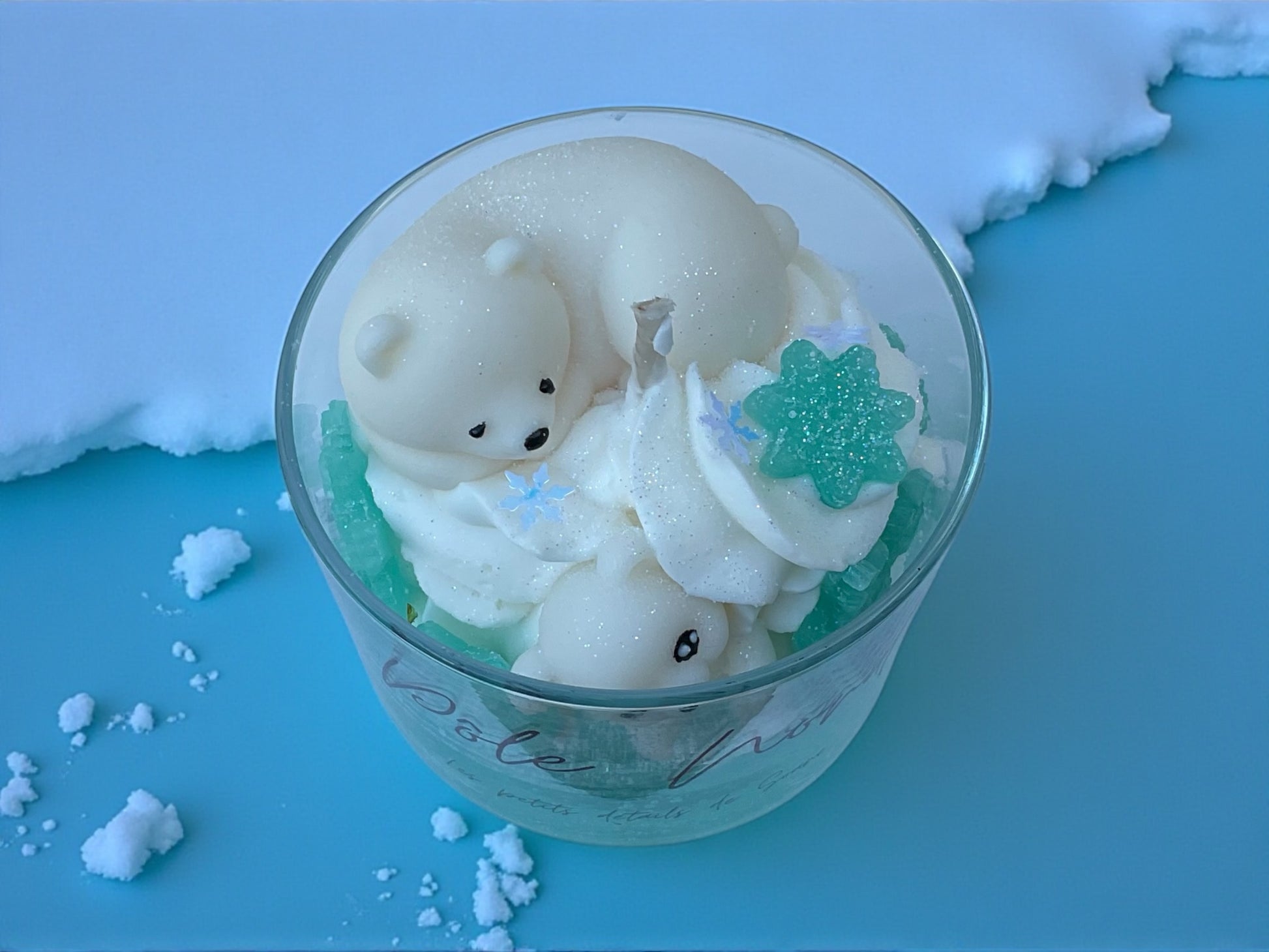 Bougie « Pôle Nord : maman ours et son ourson malicieux » – Parfum Guimauve