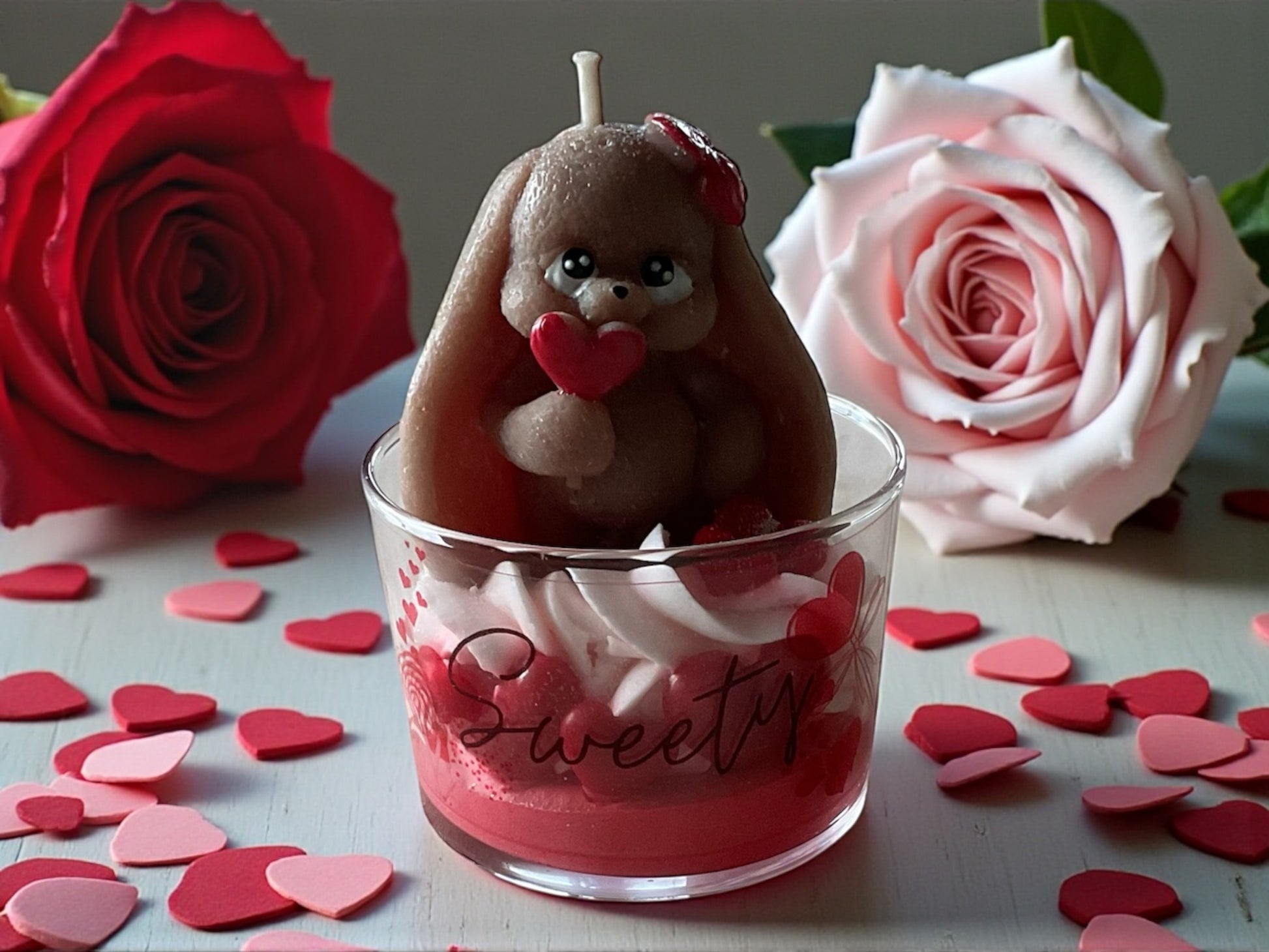 Son design craquant met en scène un adorable lapin dégustant une sucette en forme de cœur, symbole de tendresse et de passion. À la fois romantique et ludique, cette bougie est idéale pour créer une ambiance intime et cocooning lors d’un dîner aux chandelles ou d’un moment à deux.