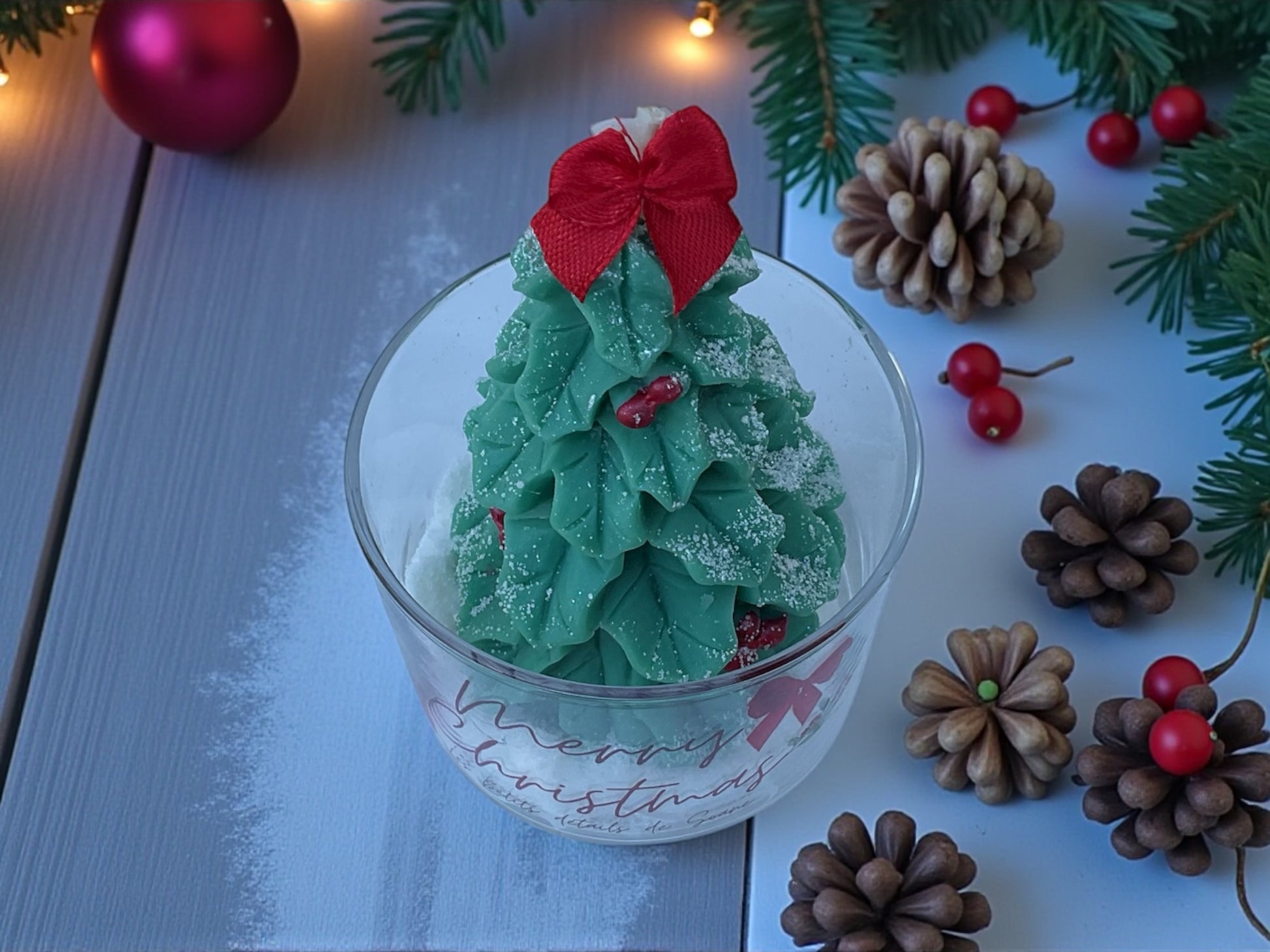 Faites entrer la magie des fêtes chez vous avec la bougie « Merry christmas » ! Sur un lit de cire blanche scintillante, un majestueux sapin de Noël en cire trône fièrement, prêt à illuminer votre intérieur de sa douce présence.