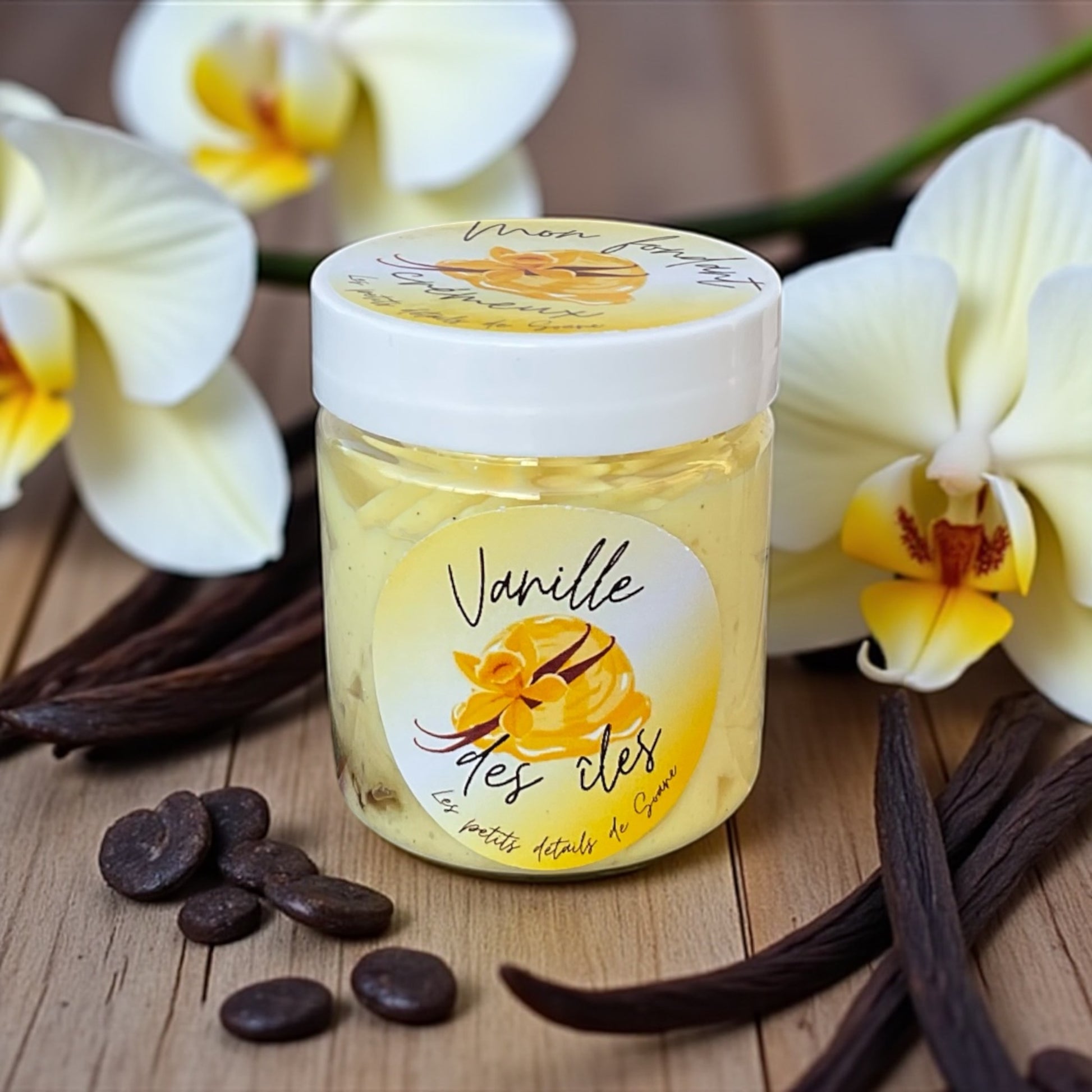 Le fondant crémeux parfumé à la Vanille des Îles, enveloppe votre intérieur d'une douceur exotique et gourmande, évoquant les arômes suaves des destinations tropicales. Avec ses notes intensément vanillées et délicieusement gourmandes, cette fragrance est une véritable invitation à la détente et au plaisir sensoriel.