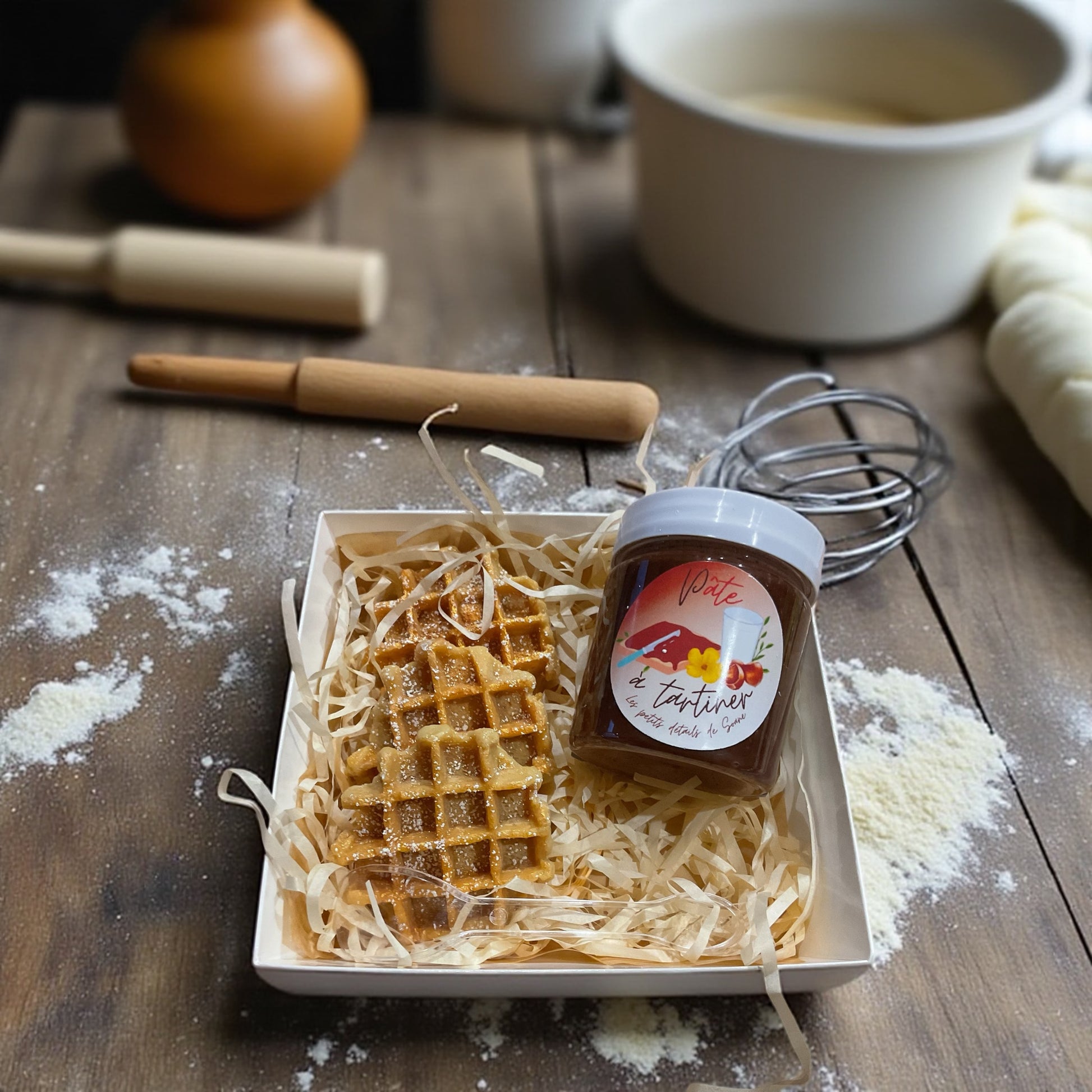 Offrez-vous une touche de douceur parfumée avec la Box trop gourmande Inspirée de l’automne et de la gourmandise, cette box contient trois galets en cire en forme de petites gaufres croustillantes, accompagnés de leur "pâte à tartiner" au chocolat… mais sous forme de parfum envoûtant !