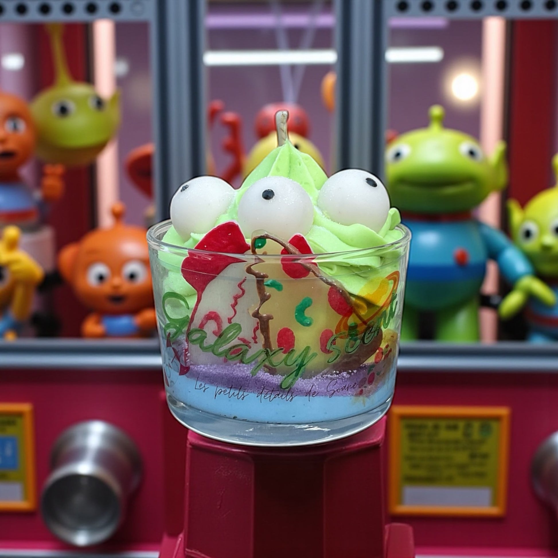 Embarquez dans l'univers intergalactique d’un célèbre dessin animé avec cette bougie inspirée de l'emblématique Alien ! Créée pour les fans de l'adorable extraterrestre aux grands yeux et à la phrase culte "Le grappin est notre maître, il choisit ceux qui s’en vont et ceux qui restent", cette bougie vous plonge dans une atmosphère cosmique et pleine de charme.